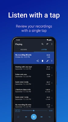 Kusursuz ses kalitesi için PCM ve MP4 gibi formatları tercih edebilir, ya da depolama alanından tasarruf etmek adına AMR seçeneğini kullanabilirsiniz. Acil bir fikir mi geldi veya önemli bir an mı yaşandı? Güçlü widget'ları ve ana ekran kısayolları sayesinde yeni bir kaydı anında başlatabilir, arka planda sorunsuz bir şekilde devam ettirebilirsiniz. Easy Voice Recorder, kayıtlarınızı e-posta veya favori mesajlaşma uygulamalarınız aracılığıyla kolayca paylaşma imkanı sunarken, hatta dilediğiniz kaydı zil sesi olarak atama özgürlüğü de verir. Akıllı saatiniz üzerinden kayıt yapma imkanı tanıyan Wear OS entegrasyonu ile hareket halindeyken bile sesli notlar alabilirsiniz. Kullanımı kolay hazır ayarlar sayesinde sesli notlar, toplantılar veya müzik kaydı modları arasında hızla geçiş yapın.