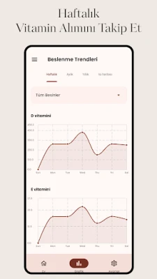 Piyasadaki en detaylı vitamin takip çözümü olarak öne çıkan Vitamin Tracker ile beslenmenizdeki belirsizliklere son verin. Artık sadece ne yediğinizi değil, aynı zamanda vücudunuzun tam olarak hangi besinleri aldığını ve hangilerine daha fazla ihtiyaç duyduğunu da net bir şekilde görebilirsiniz. İlerlemenizi adım adım takip ederek sağlıklı alışkanlıklar edinmenize ve beslenme hedeflerinize ulaşmanız için bilinçli kararlar almanıza yardımcı olur. Bu güçlü araç, sağlığınızı içeriden dışarıya doğru yönetme gücünü size verir, size daha zinde ve enerjik bir yaşamın kapılarını aralar.