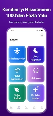 Meditopia, sadece uykuya odaklı çözümlerin ötesine geçerek 1000'den fazla derin meditasyon sunar. Yaş, kültür ve deneyim fark etmeksizin günlük yaşamın zorluklarına özel içeriklerle ruhsal dengeyi bulmanızı sağlar.