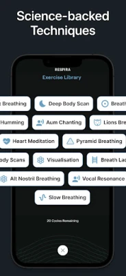 RESPIRA, stresi azaltmak, odaklanmayı artırmak ve uykuyu iyileştirmek için nefes egzersizleri sunar. Rehberli seanslar ve sürükleyici ses manzaralarıyla zihinsel ve fiziksel sağlığınızı güçlendirin. Nefesinizin gücüyle daha iyi bir yaşam keşfedin.