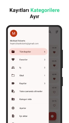 Kayıtlarınızı düzenlemek ve erişmek hiç bu kadar kolay olmamıştı. Ses Kaydedici - Sesli notlar, sesli notlarınızı kolayca kategorize etmenize, favorilerinizi işaretlemenize ve kayıtların belirli bölümlerine etiketler eklemenize olanak tanır. Önemli anları kaydedilirken tek bir dokunuşla işaretleyebilir, böylece daha sonra kolayca bulabilirsiniz. Wi-Fi üzerinden bilgisayarınıza hızlı ve güvenli aktarım yapabilir, entegre Google Drive veya Dropbox desteği sayesinde tüm kayıtlarınızı bulutta saklayarak tüm cihazlarınızdan erişebilir ve güvence altına alabilirsiniz. Android Wear uyumluluğu ile kayıt deneyiminizi bileğinize taşıyın.